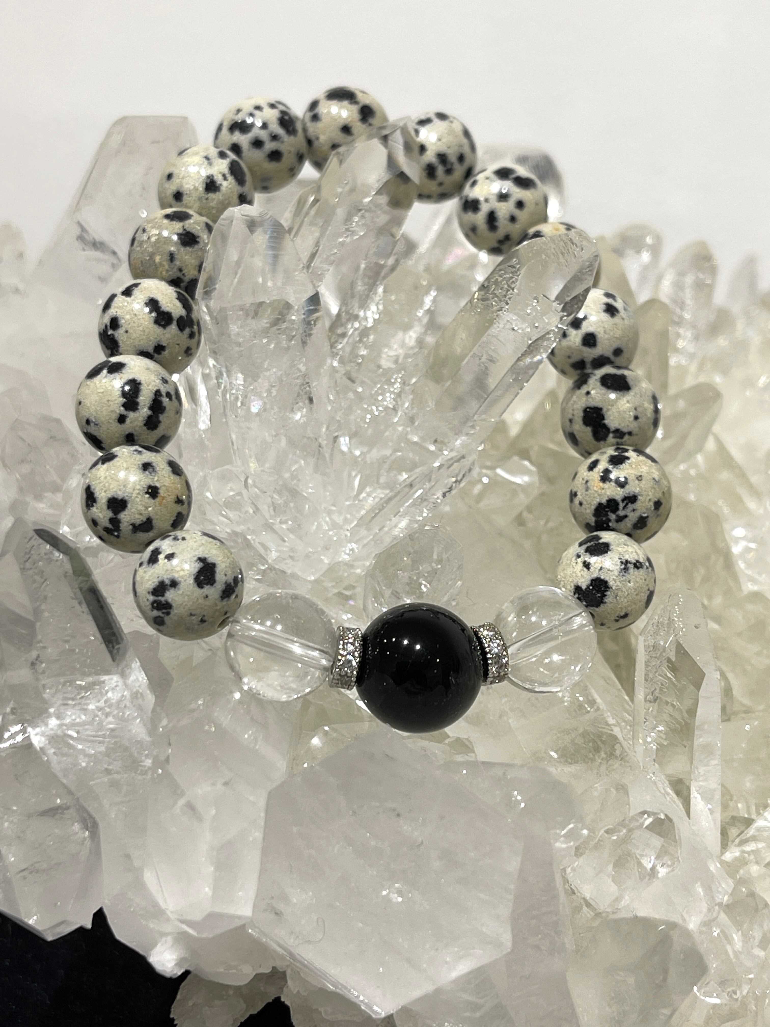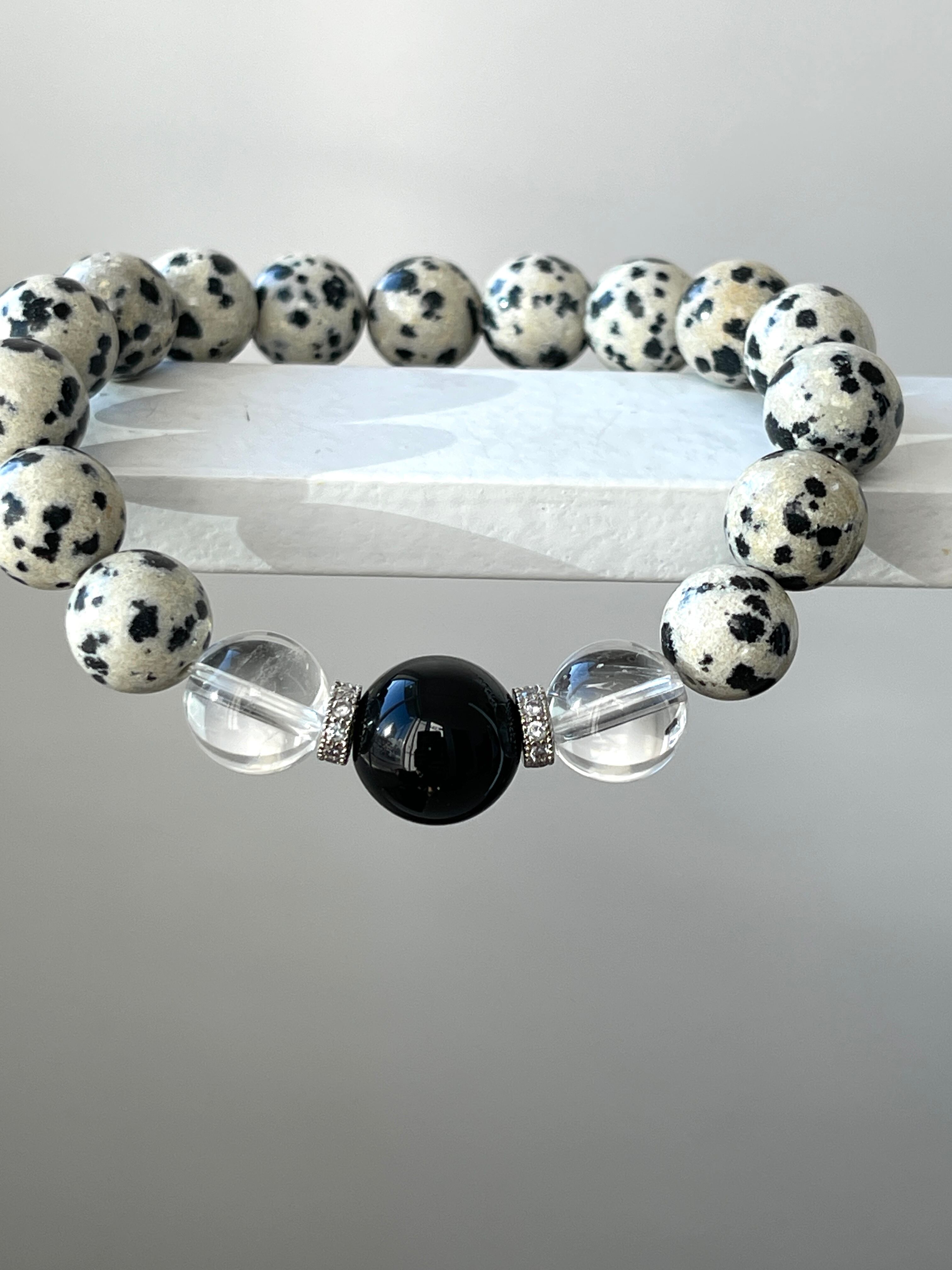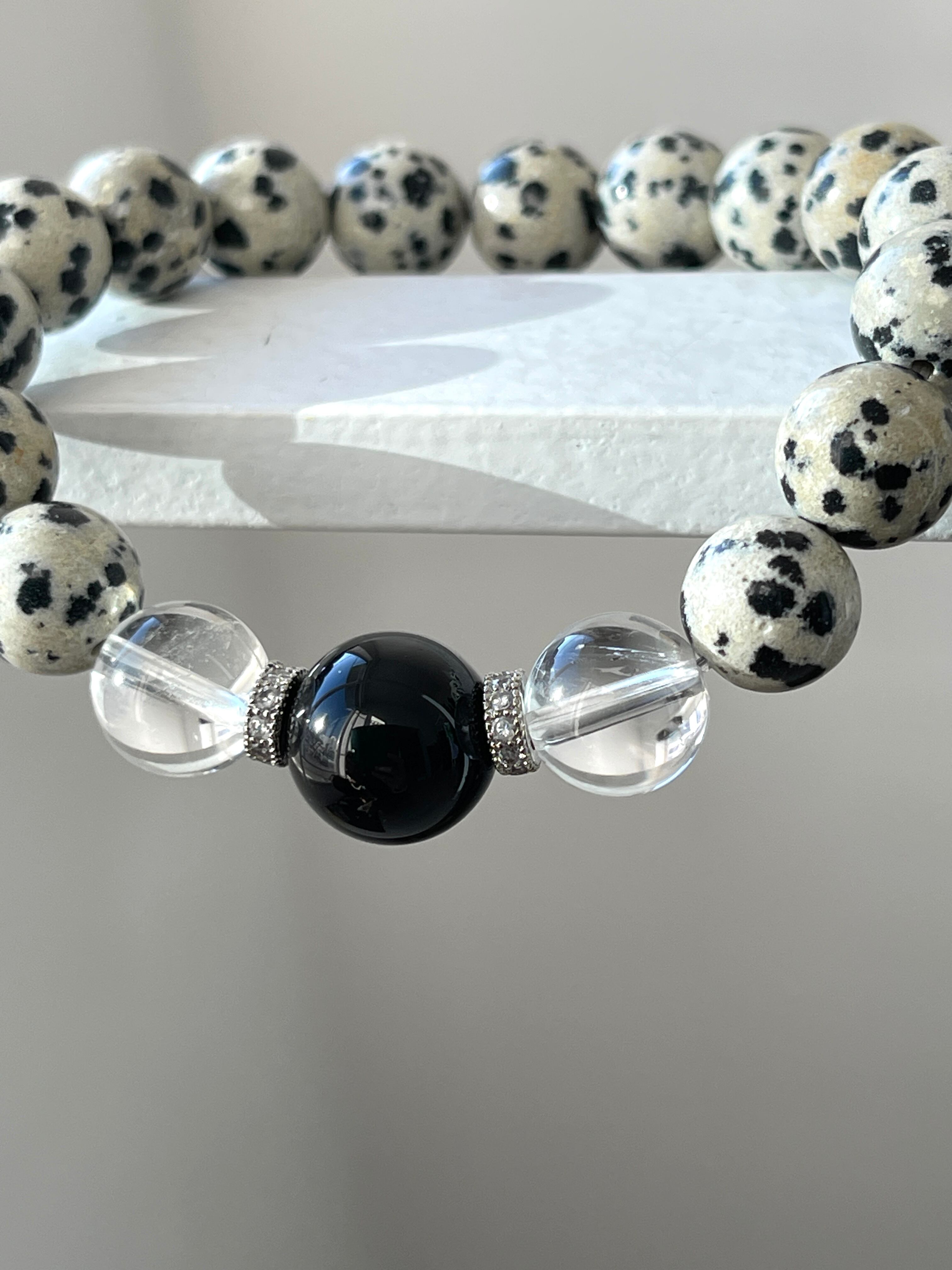 【魔除け.危険回避】モリオン&ダルメシアンジャスパー♡パワーストーンブレスレット