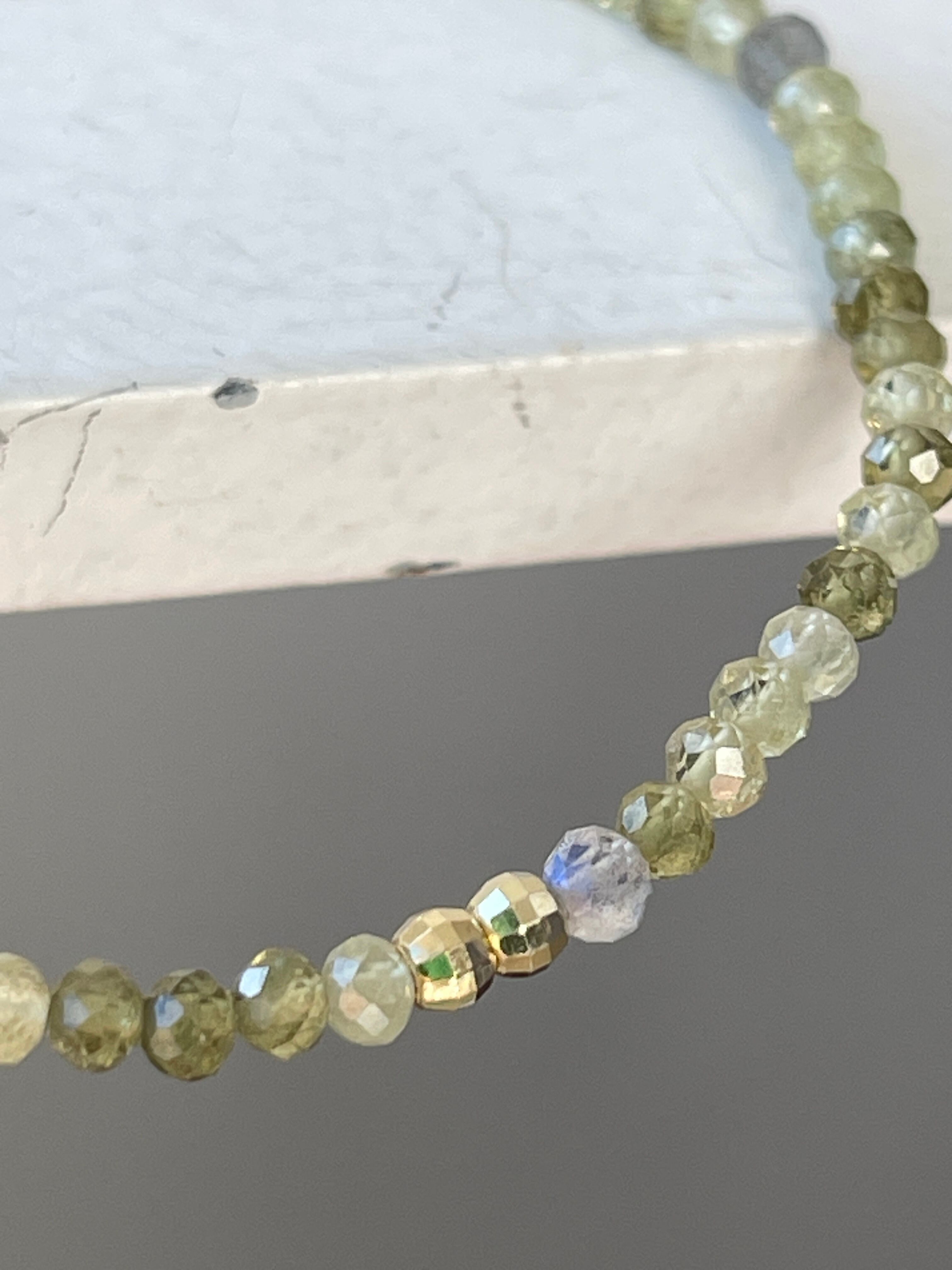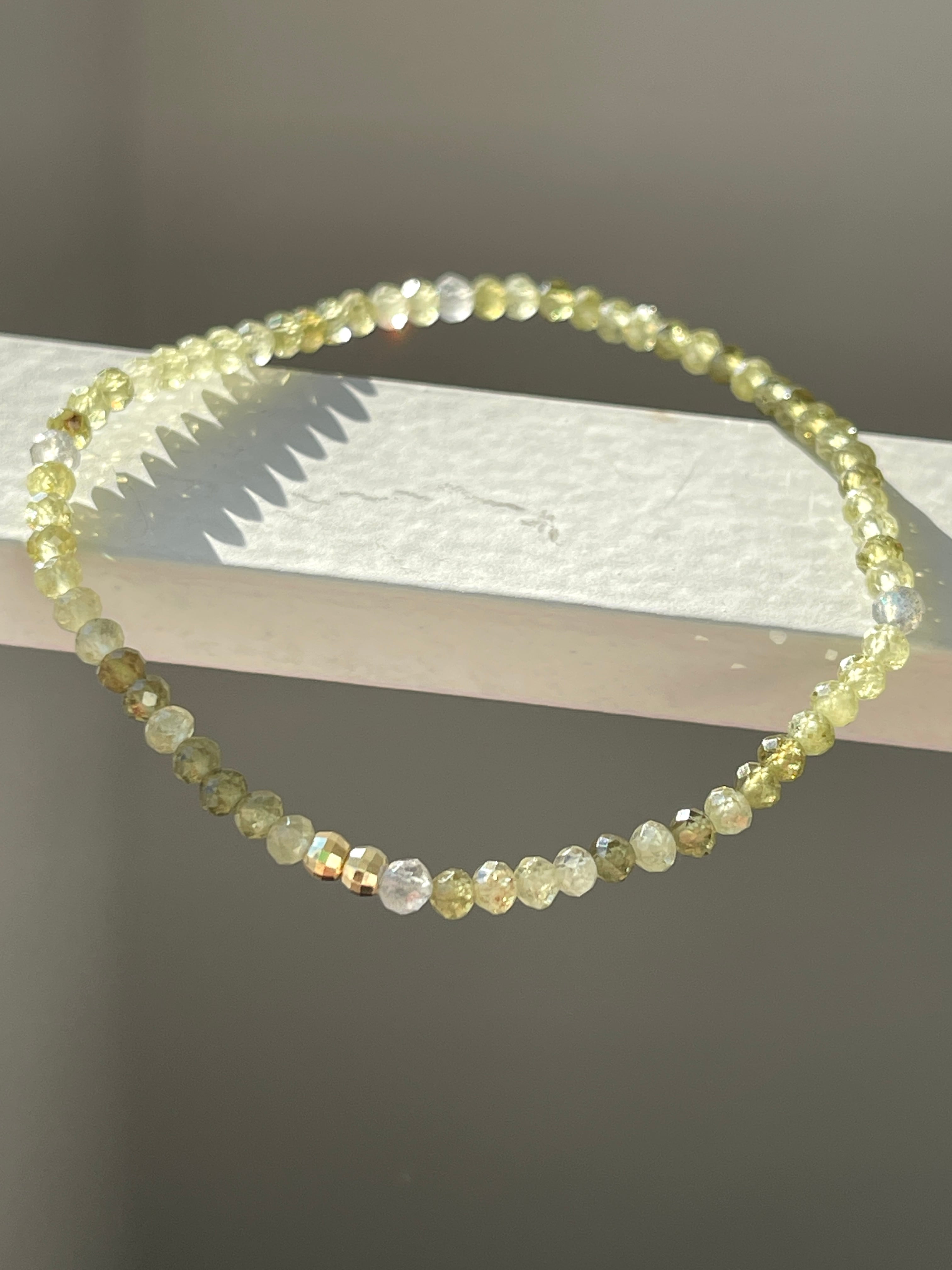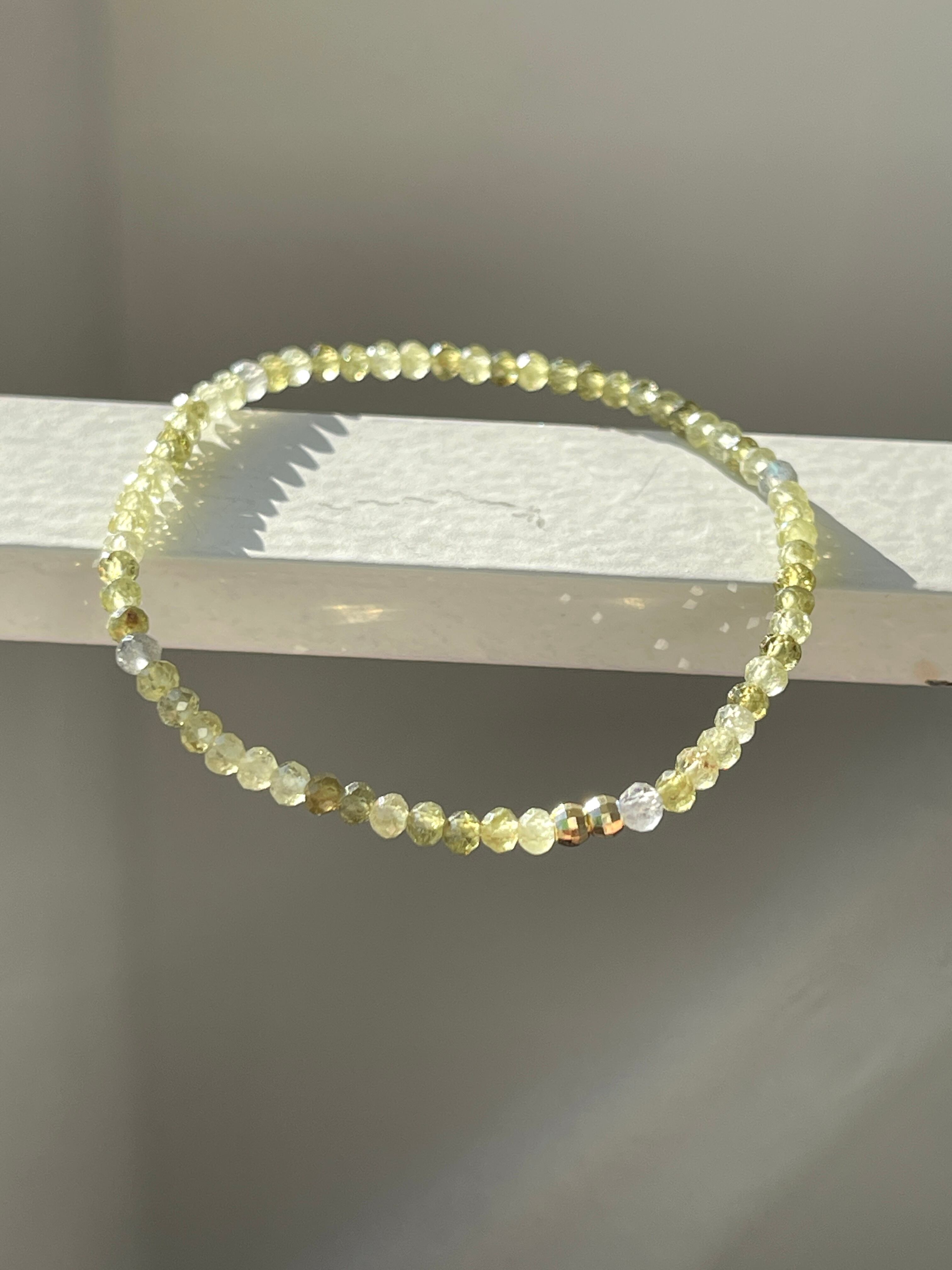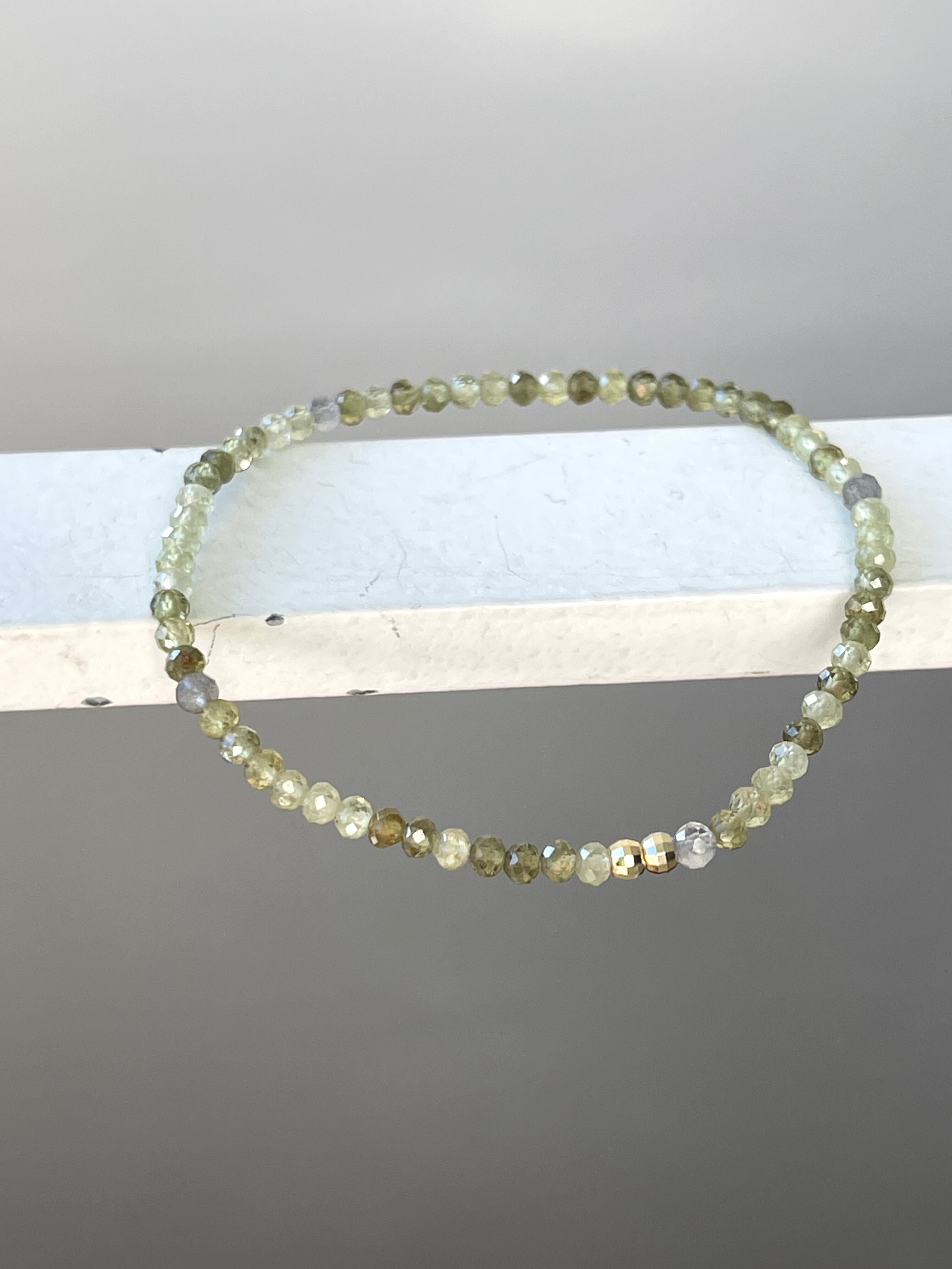 小さな石を使用した華奢なブレスレットですので、